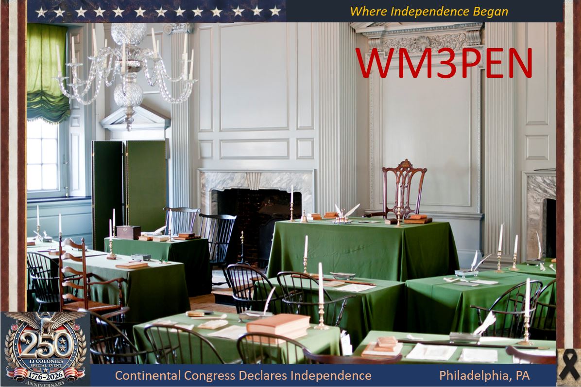 In keeping with the theme the WM3PEN QSL card will feature the Assembly Room in Independence Hall